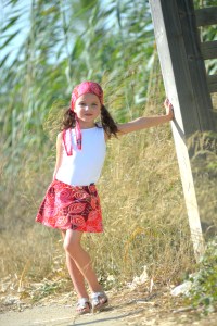 foulard et jupe. rouge